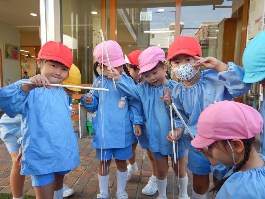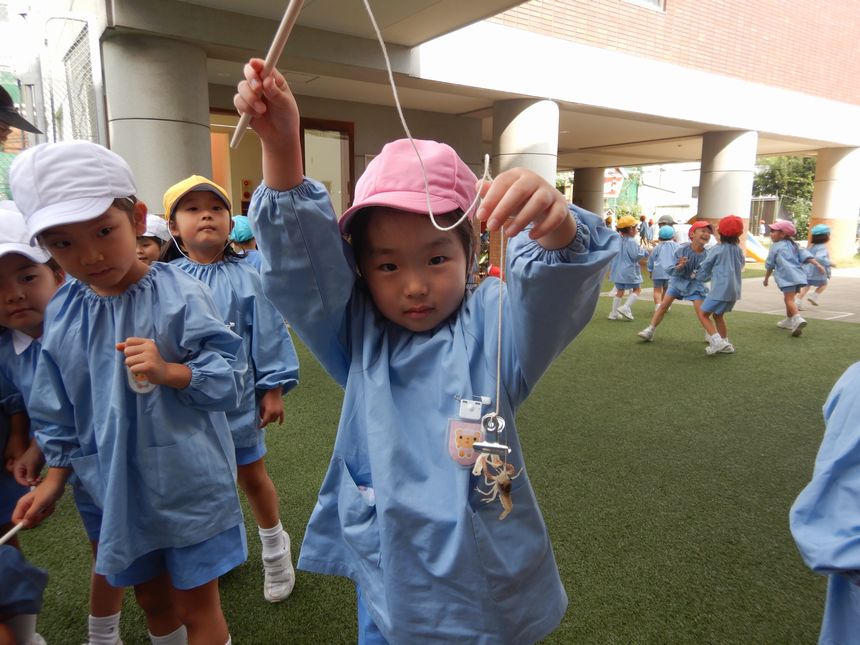 どのようにすれば釣れるのかを友達と話し合いながら、にぎやかに楽しみました!