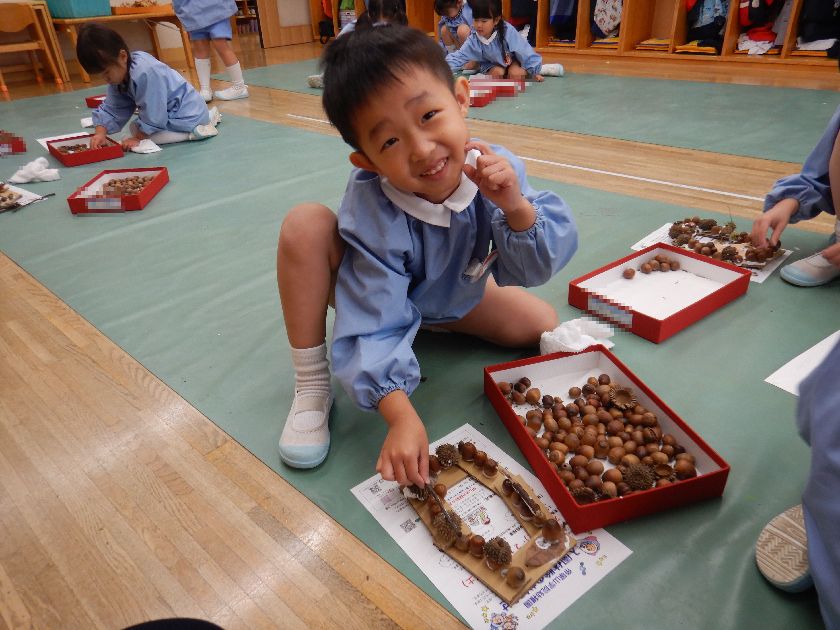 10月の園外保育、大泉緑地公園で拾ってきたどんぐりや落ち葉たち。