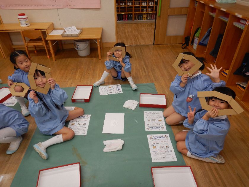 また、戸外遊びに行ったときに色とりどりの葉や自然物をみつけた子どもたち。