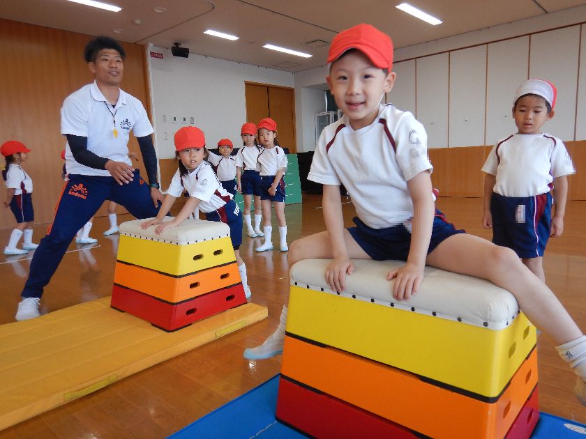 本日、孫入先生の体育教室がありました。今日は跳び箱に挑戦!