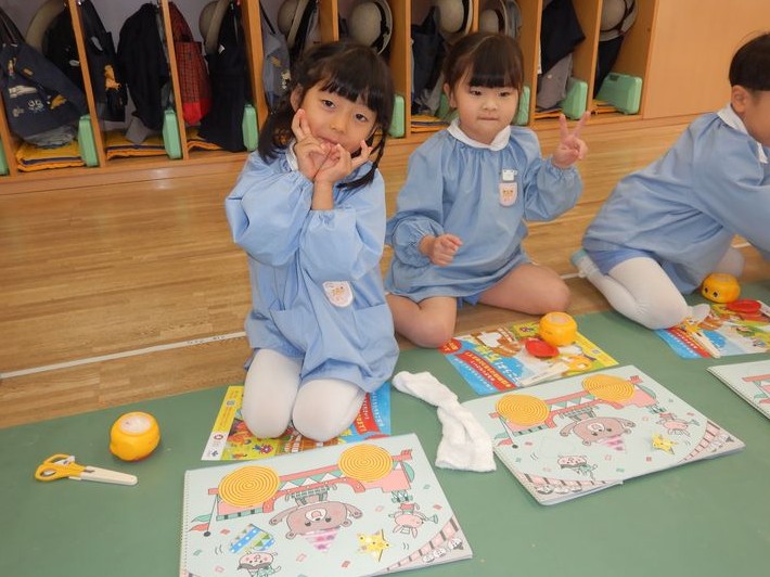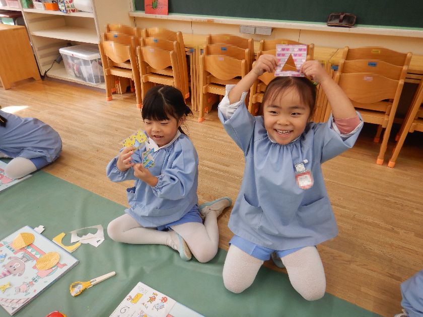 本日年中組ではきりがみのおしごとに取り組みました!今日はついに最終回!対象切りにチャレンジです!