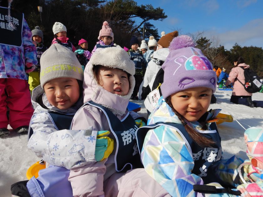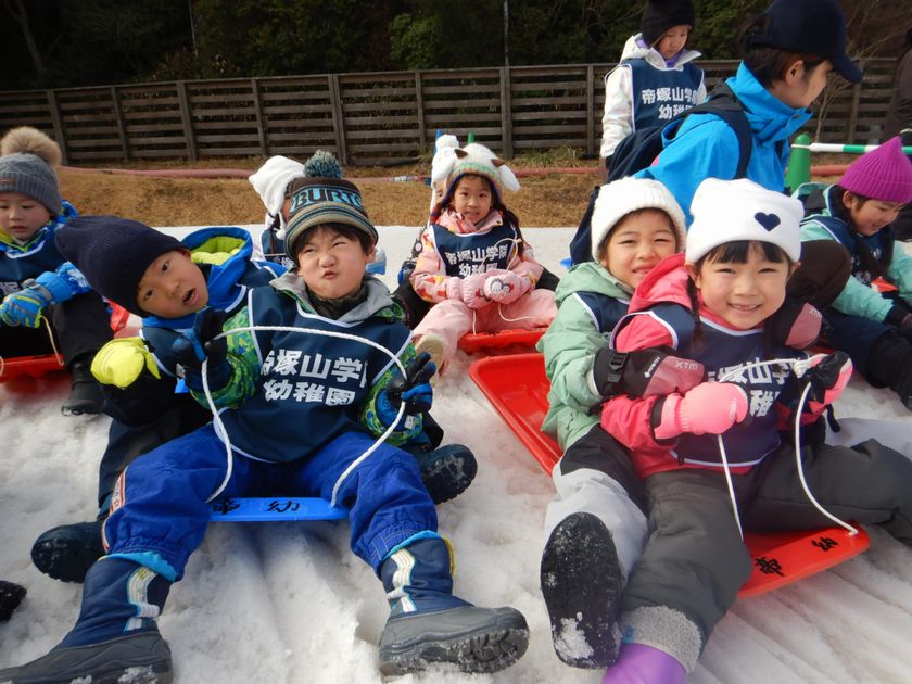 お友達や先生と一緒にそり滑りをして楽しんでいましたよ!