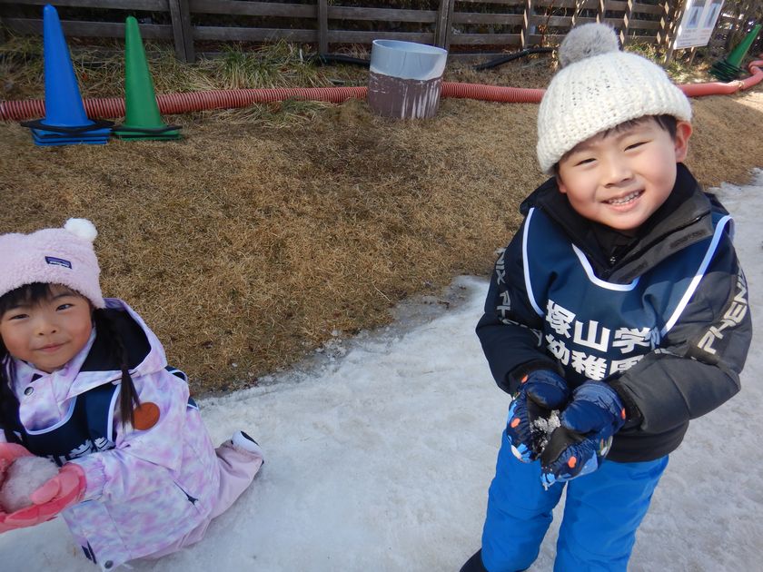 「みてみて雪だるまできたよ!」と嬉しそうな子ども達。