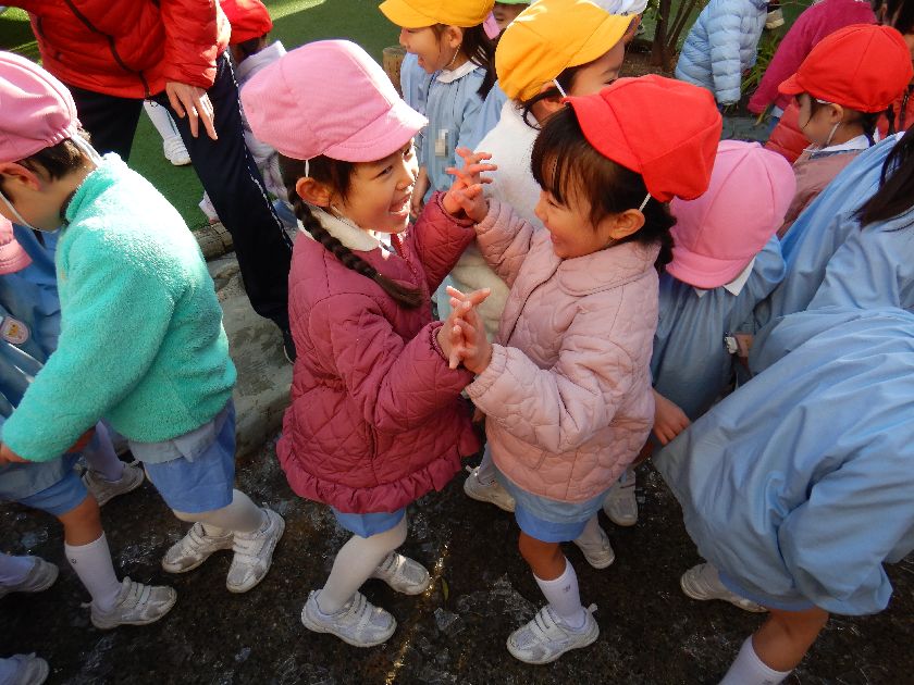子どもたちはつるつる滑る氷の上を、きゃーきゃーいいながら友達と手をつなぎながら歩いたり、おどってみたりして氷の上を歩く感覚を楽しんだようでした。