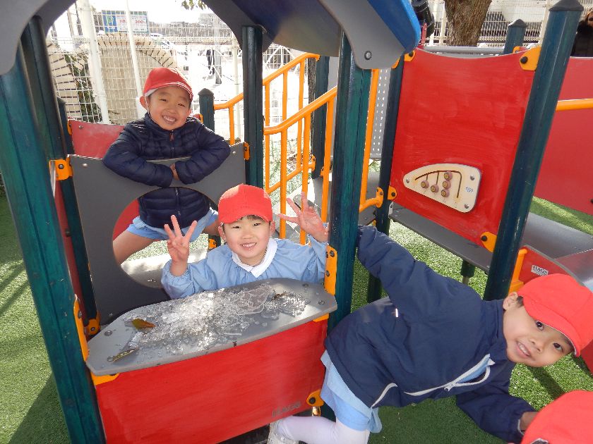 もちろん幼稚園のじゃぶじゃぶ池も分厚い氷ができ、小さなスケートリンクになりましたよ。