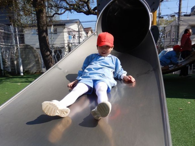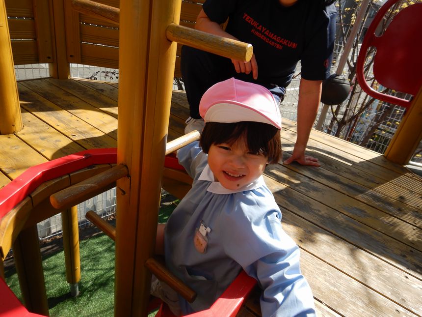 年中組になり、体の動かし方が上手くなったり体力が上がったりして大型遊具での遊びがスムーズになったようで、勢い良く登って遊ぶ様子がありました。