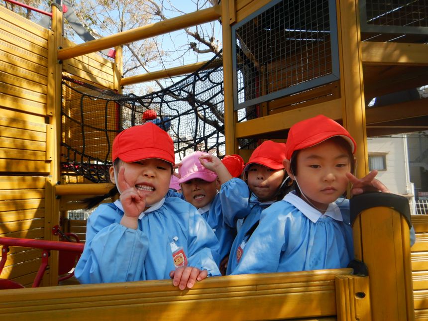 「年少組の時にはどきどきした大型遊具も、今ではするするっとできるようになったね。」と自分たちの成長も感じることができ、年長組への進級に自信をもてた時間となりました。