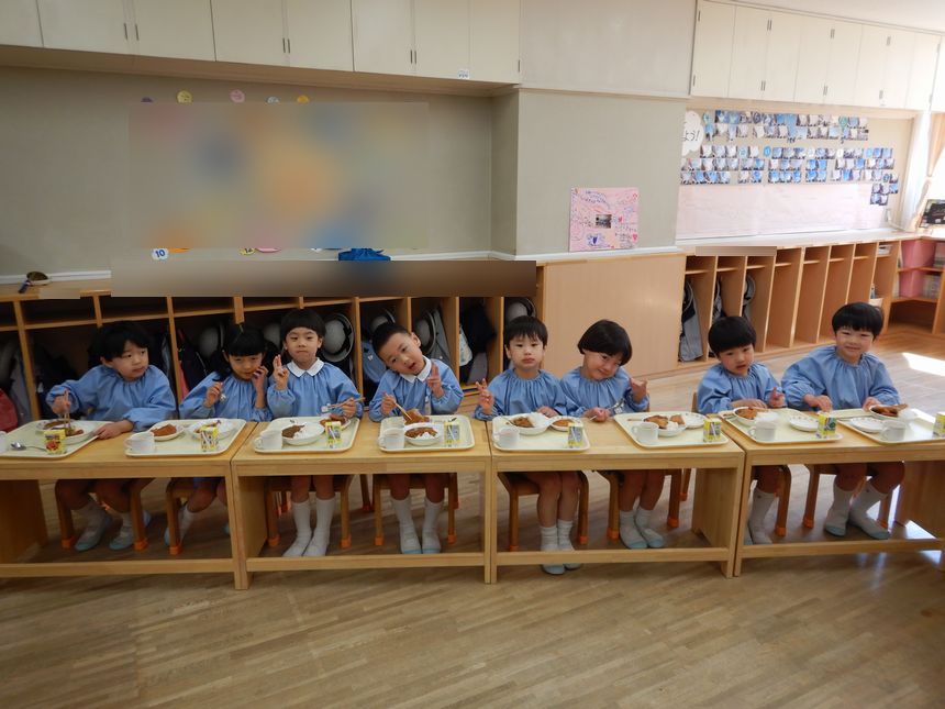 今日は最後の給食!みんなでどんなレイアウトで食べるか相談し合い、納得をしてみんなで食べました。相談するのも少しずつ上手にできるようになってきましたね。