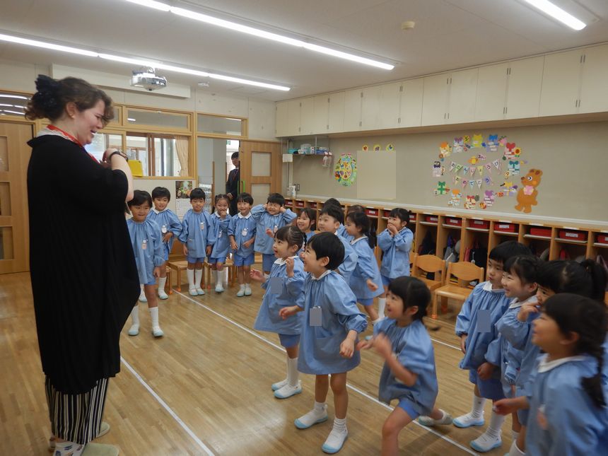 はじめは緊張していた子ども達ですが、優しい先生と歌って踊ってイングリッシュを楽しみました。