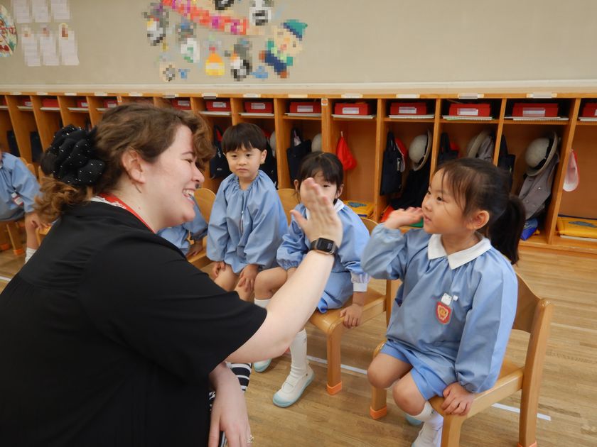 最後にはイングリッシュの先生と仲良くハイタッチ♪