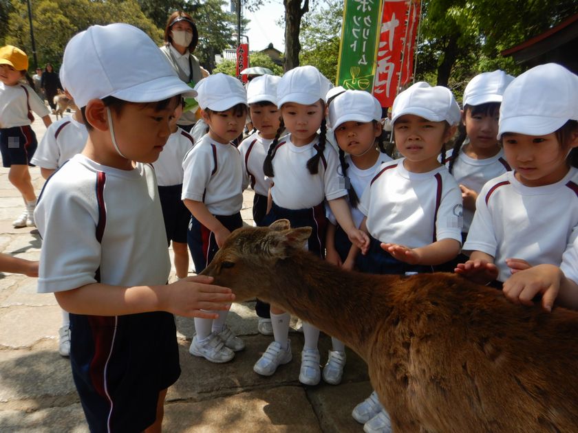 今日は今年度初めての園外保育!奈良公園へ行きました。