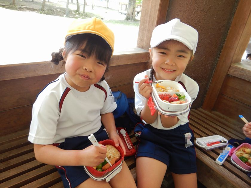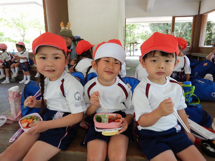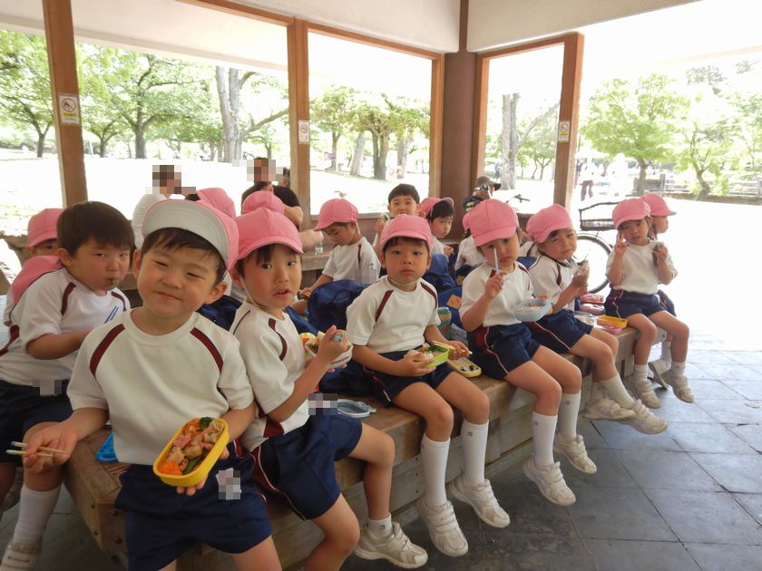 公園内で年中、年長組みんなでお弁当をいただきました♪